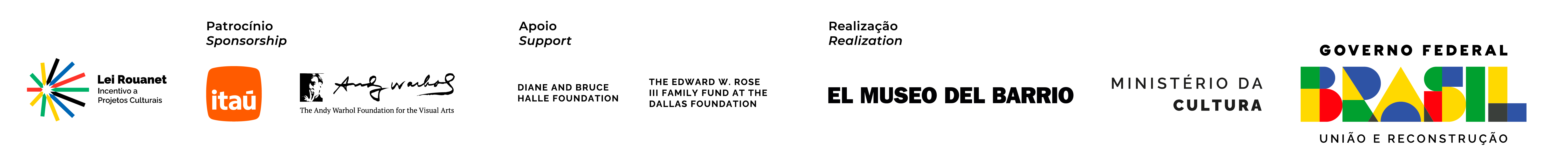 Mestre Didi: Spiritual Form is presented by the Ministério da Cultura of Brazil, Itaú, and the Andy Warhol Foundation for the Visual Arts. Additional support is provided by the Diane & Bruce Halle Foundation and The Edward W. Rose III Family Fund at The Dallas Foundation, and by Guilherme Simões de Assis, Almeida & Dale Galeria da Arte, São Paulo, James Cohan Gallery, Flavia & Guilherme Teixeira, Fernanda Feitosa & Heitor Martins, Allan Schwartzman, and Graham Steele.